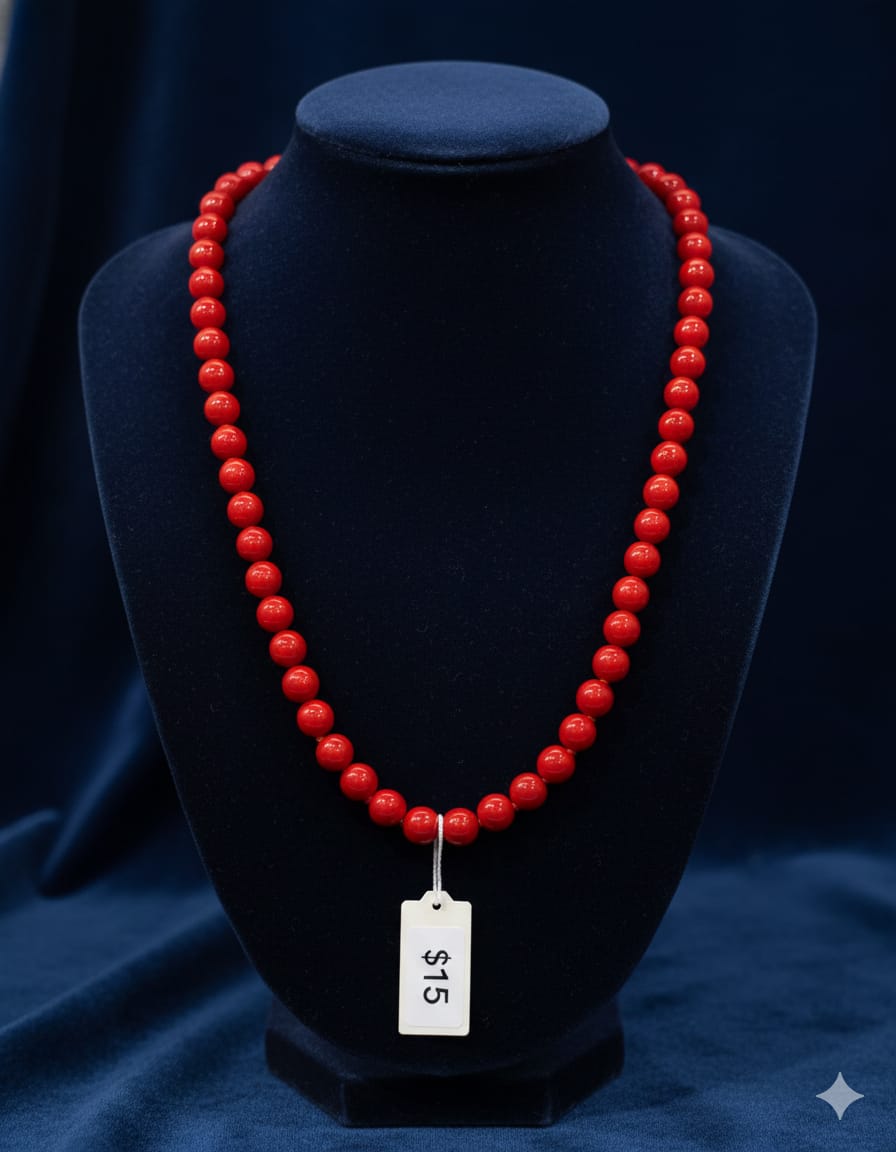 Make a bold statement with this vibrant Crimson Bead Mala. Featuring a single strand of uniform, high-gloss beads, this necklace offers a clean and classic aesthetic that commands attention. The rich, saturated red color provides a powerful pop of energy to any outfit, whether worn for its meditative significance or as a striking fashion accessory.