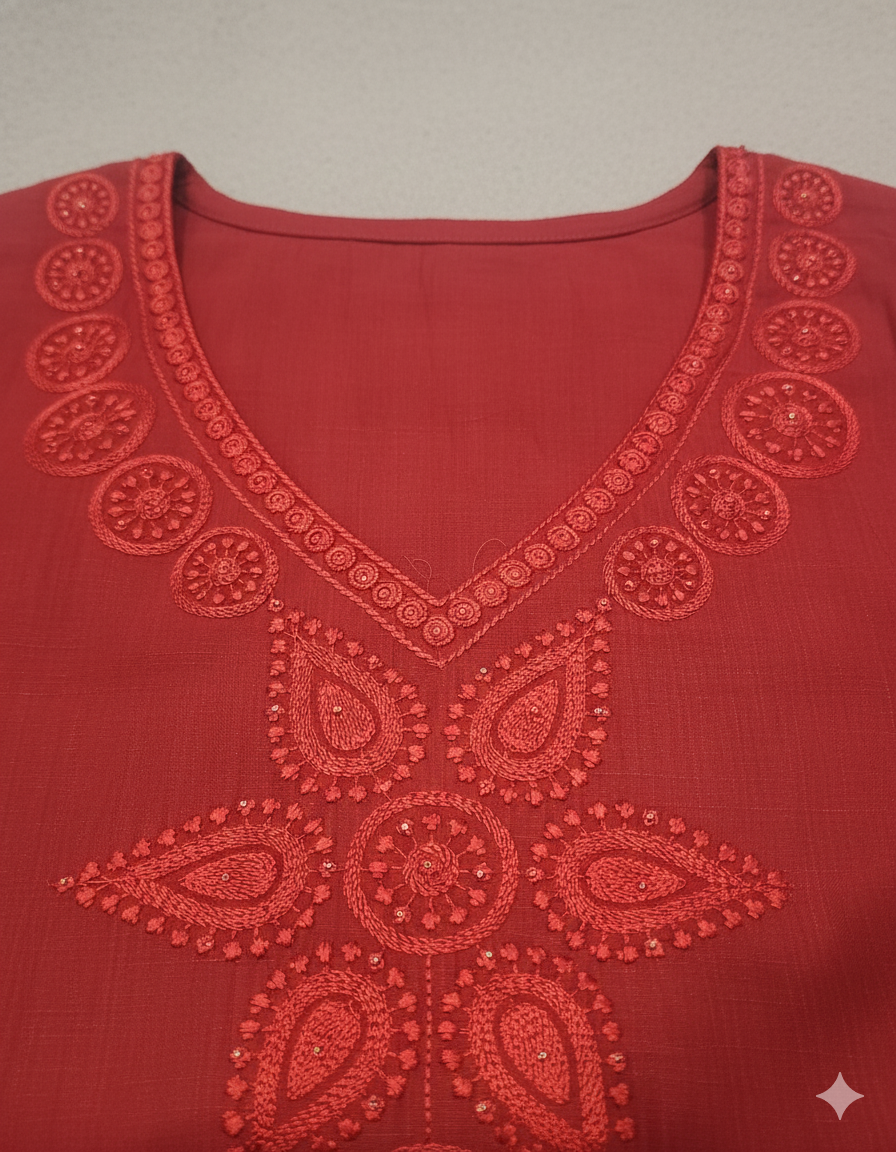 Premium Maroon Embroidered Side-Cut Kurti
