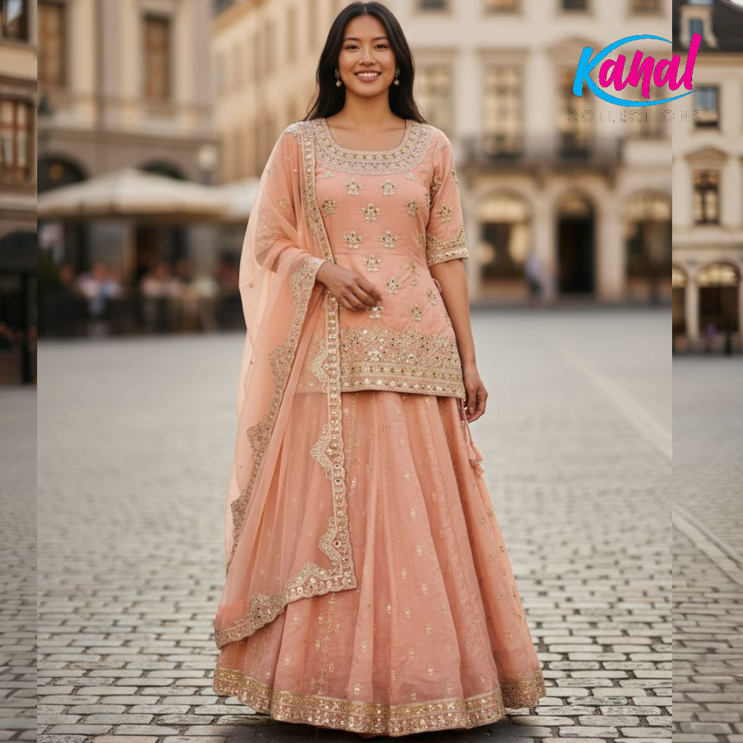 Step into timeless grace with this beautifully crafted lehenga set, designed with intricate embroidery and delicate detailing. Perfect for festive occasions, weddings, and celebrations, it blends traditional artistry with a modern, flattering silhouette.