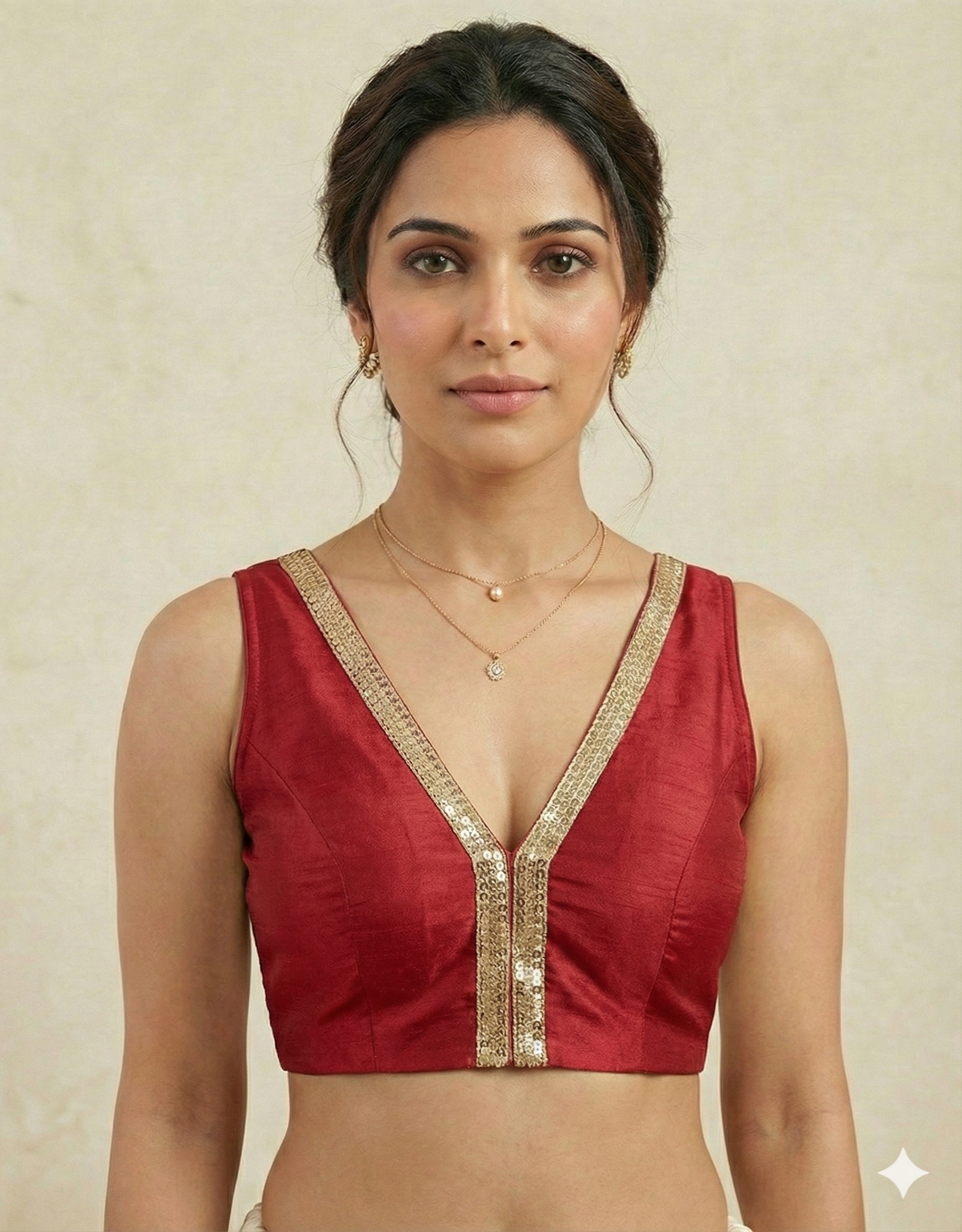 V-Neck Saree Blouse with Attached Sleeves (Size 38 + Margin)