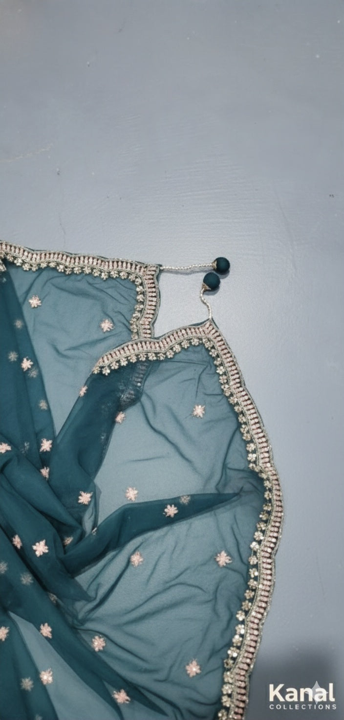 Deep Teal Ornate Semi-Bridal Lehenga Set – Size XL